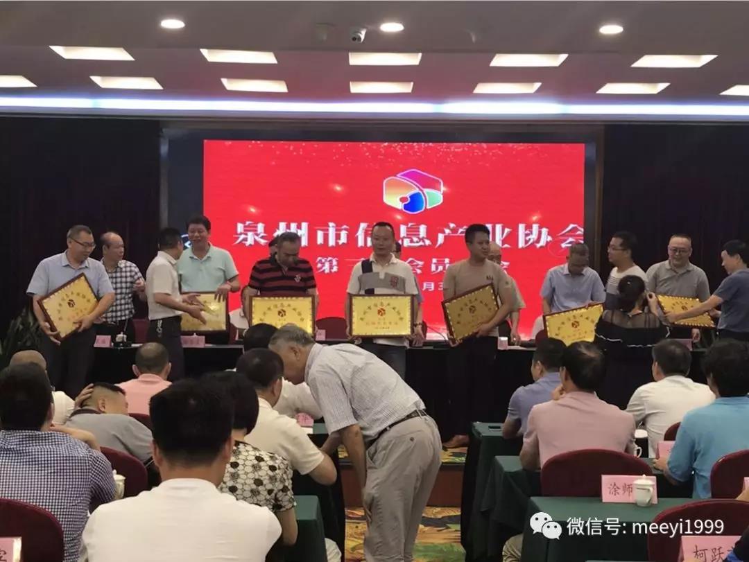 泉州市政府有關(guān)部門(mén)領(lǐng)導(dǎo)為協(xié)會(huì)領(lǐng)導(dǎo)頒發(fā)牌匾,福建環(huán)宇通信息科技股份公司當(dāng)選為泉州市信息產(chǎn)業(yè)協(xié)會(huì)常務(wù)副會(huì)長(zhǎng)單位。