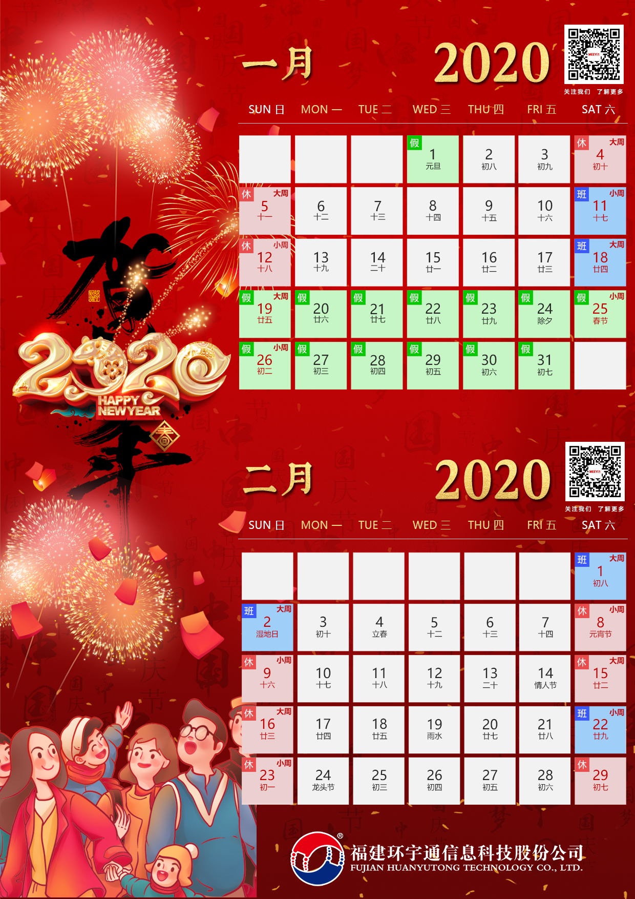 在此首先對(duì)新老客戶們致以誠(chéng)摯的新年祝福:鼠年康強(qiáng),心想事成,道運(yùn)亨通! 我司決定于2020年1月19日(農(nóng)歷二零一九年十二月廿五)正式放假,于2020年2月1日(農(nóng)歷二零二零年正月初八)恢復(fù)正式上班,共計(jì)13天,期間如有技術(shù)或者業(yè)務(wù)需求可以與我司相關(guān)人員聯(lián)系,給您帶來的不便敬請(qǐng)諒解。(附放假表)
