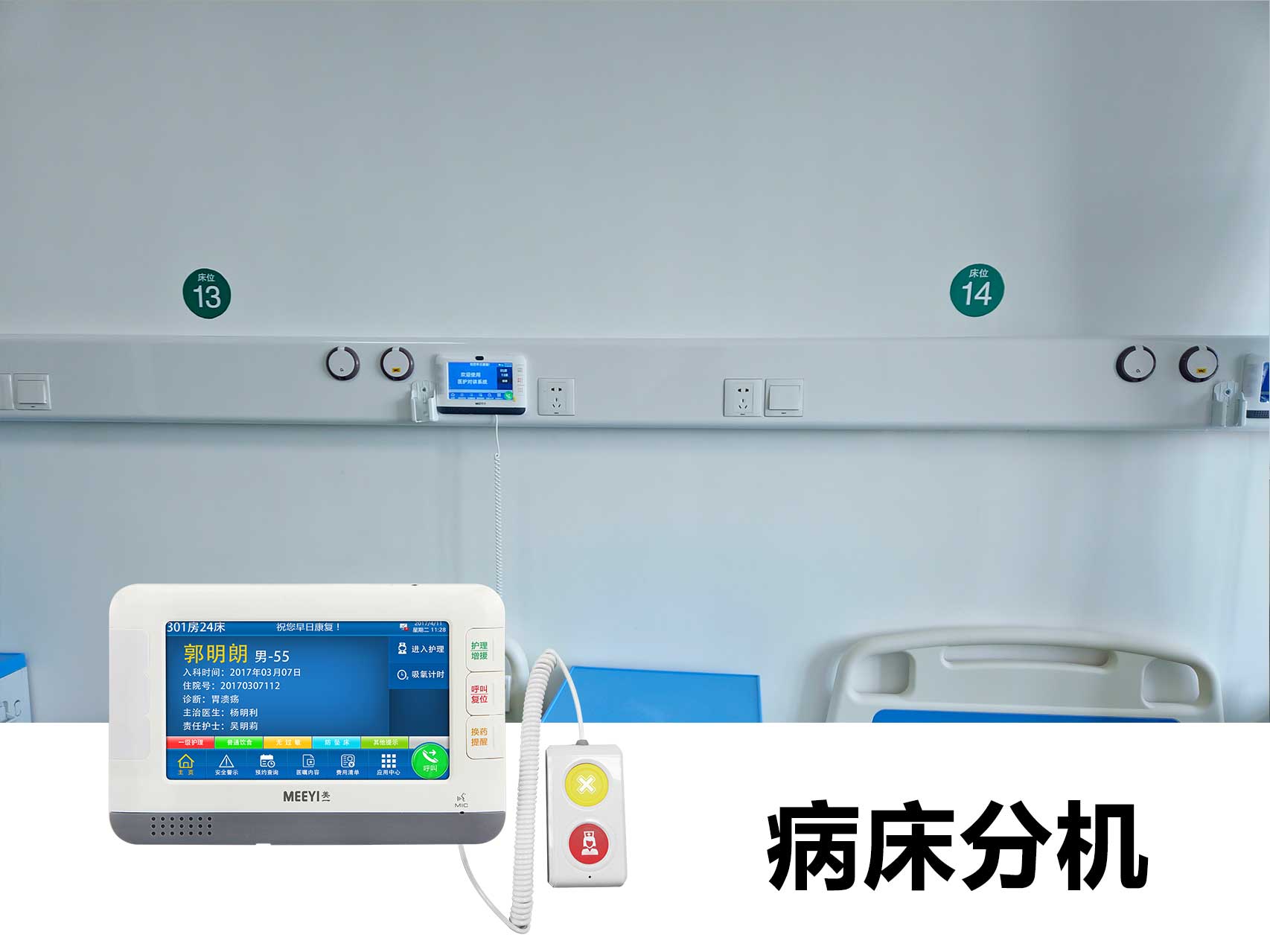 項(xiàng)目介紹鹽城大豐區(qū)第三人民醫(yī)院2023年環(huán)宇通參與鹽城市大豐區(qū)第三人民醫(yī)院智能化改造建設(shè),該院創(chuàng)建于1952年,占地面積21400平方米,建筑面積32000平方米,是一所集醫(yī)療、教學(xué)、預(yù)防保健、康復(fù)為一體的二級(jí)綜合性醫(yī)院。該院在此次智能化建設(shè)中,引入我司自主研發(fā)的“美一MEEYI”智慧醫(yī)護(hù)綜合解決方案,包括病房智能呼叫系統(tǒng)、分診排隊(duì)叫號(hào)系統(tǒng)。通過該方案搭建起了病患與醫(yī)護(hù)人員之間快速溝通的橋梁,解決現(xiàn)有病人就診時(shí)排隊(duì)的無序、醫(yī)生工作量的不平衡、就診環(huán)境嘈雜、家屬探視困難等問題。便捷的使用方式,細(xì)致的內(nèi)容分類,豐富的使用功能,使患者需求得到快速響應(yīng),極大提升了醫(yī)護(hù)人員的工作效率,得到院方工作人員及使用病患的肯定。