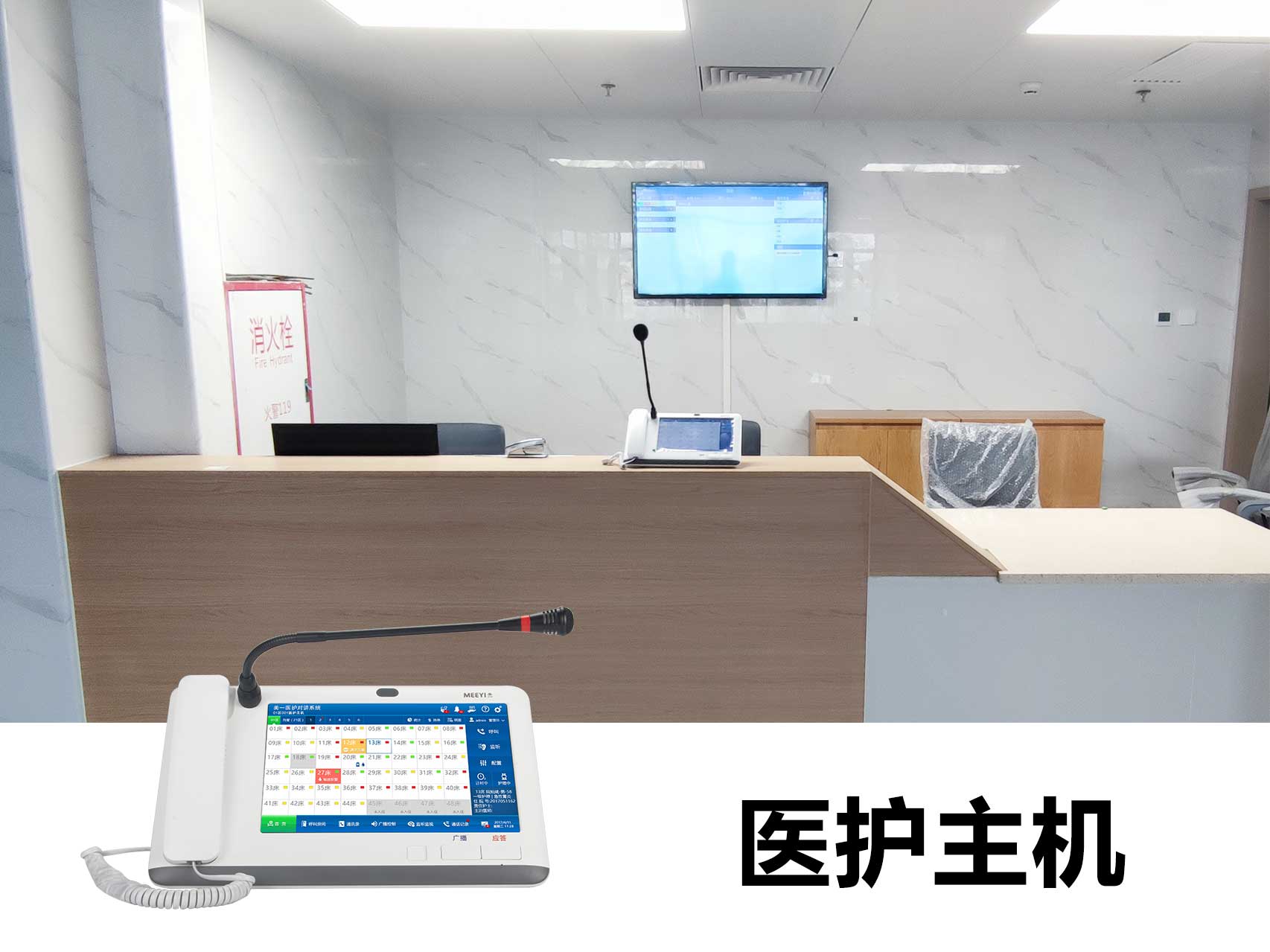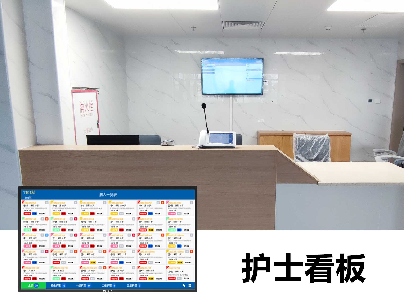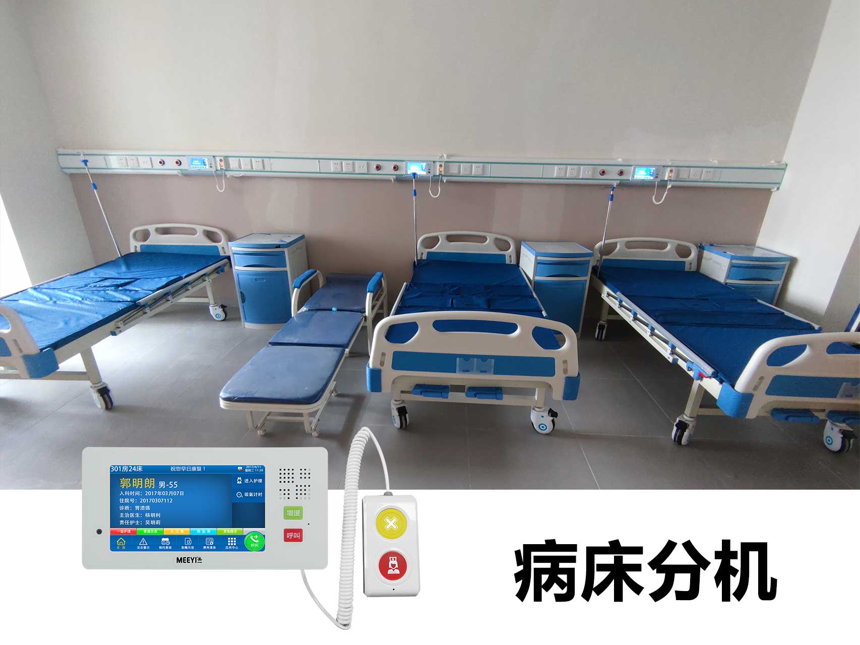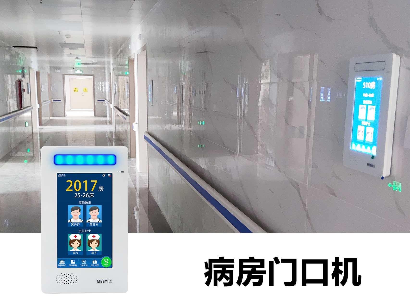 此次羅定市第五人民醫(yī)院智能化改造采用了我司自主研發(fā)的“MEEYI美一”智慧醫(yī)養(yǎng)綜合解決方案。通過該方案可以實(shí)現(xiàn):